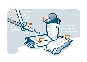 Paper packaging offers a number of advantages over its plastic counterparts: It has a high recycling rate, lower CO₂ emissions, and lower disposal costs. However, it cannot yet be sealed without adhesives or layers of plastic, a disadvantage for manufacturing and recycling processes. In the PAPURE project, four Fraunhofer institutes are developing a laser-based process that enables completely adhesive-free paper packaging.