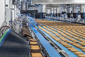 Robots can perform these functions with great speed, lifting products from feed belts onto transport modules or into trays, for example. These agile helpers enable hygienic processes thanks to their easily accessible, easy-to-clean surfaces. There are also product-specific gripping or suction tools made from food-safe materials, which can now be easily manufactured using 3D printing. Unlike human hands, the devices always pick up baked goods with the same force and speed. In addition to the high level of process hygiene, robots also offer another clear advantage: intact waffles, biscuits and croissants that show no defects such as breakage or pressure marks – causing as little waste as possible.